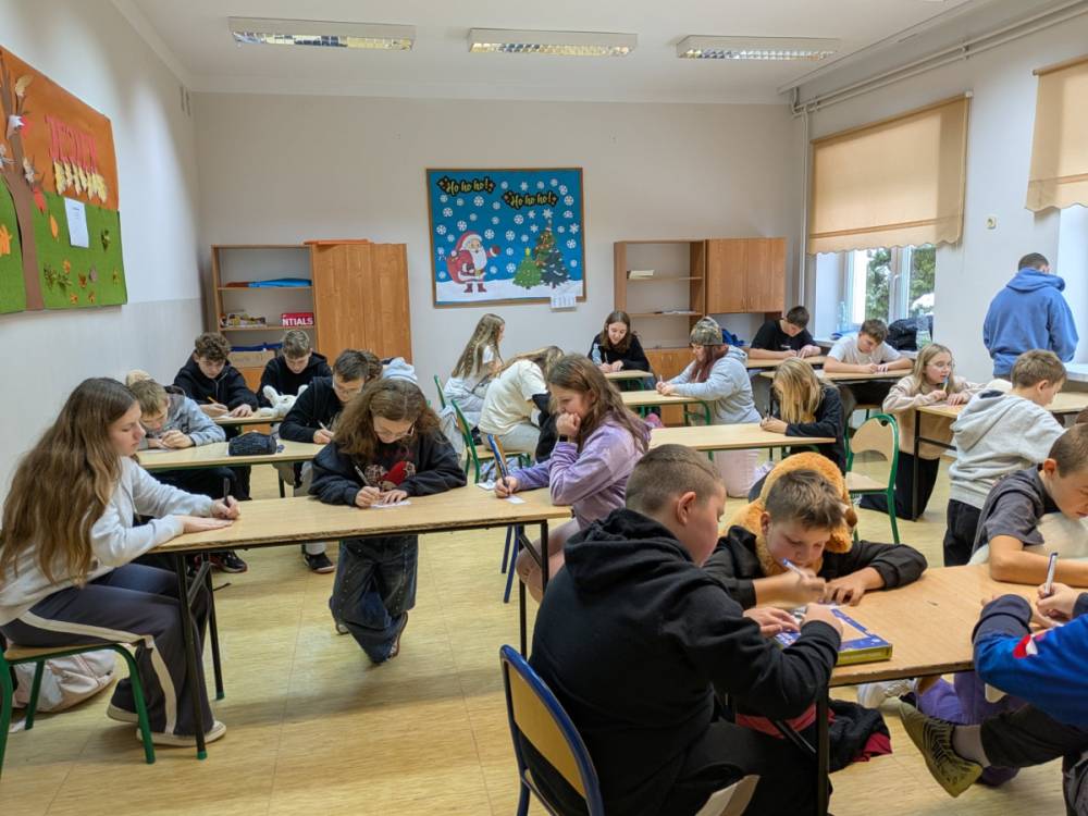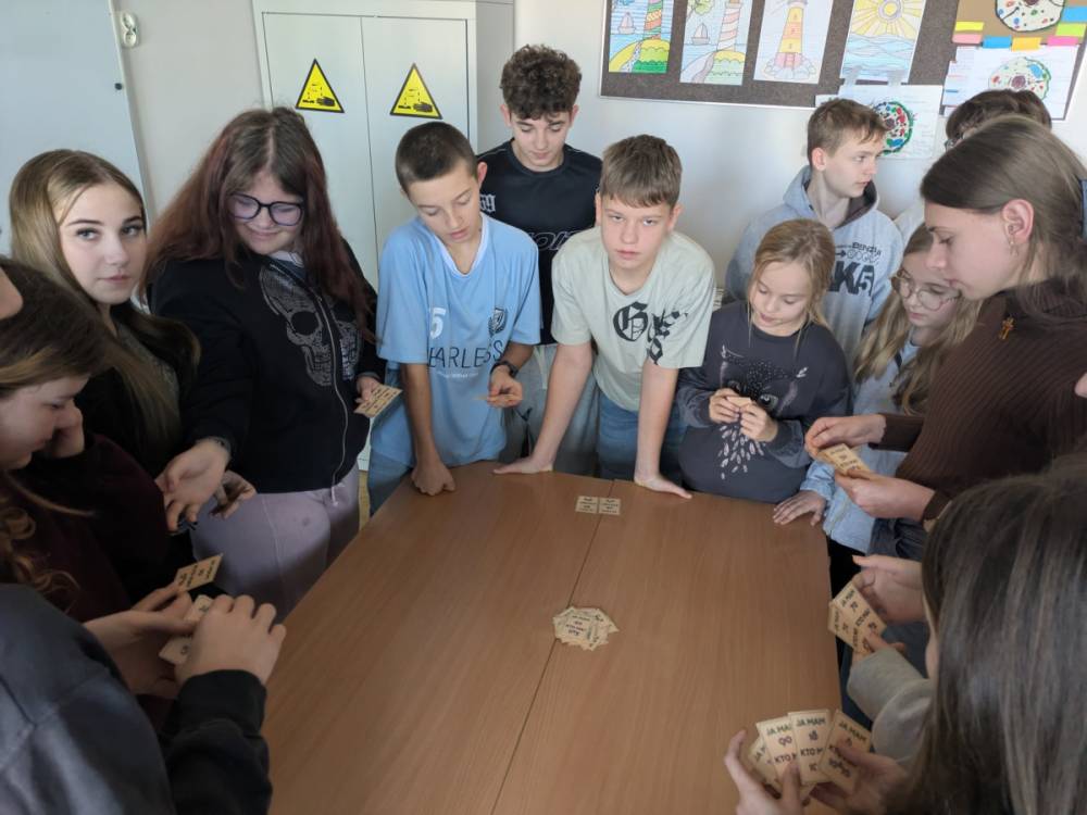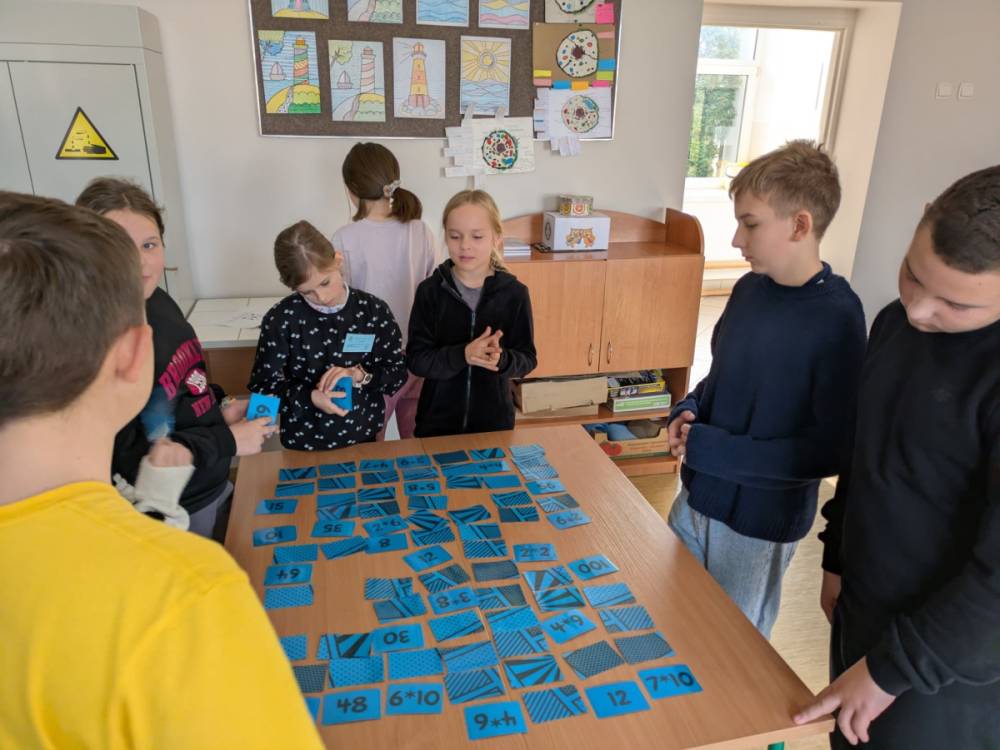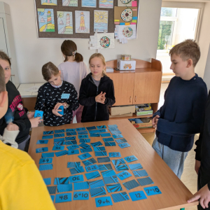 Uczniowie naszej szkoły z dużym zaangażowaniem brali udział w różnych grach i zabawach matematycznych . Były też ćwiczenia interaktywne, łamigłówki, labirynty i szyfrogramy utrwalające tabliczkę mnożenia. Ponadto asystenci z klasy 4 rozdawali starszym kolegom i koleżankom karteczki – pytania z tabliczki mnożenia i dzielenia, które po udzieleniu prawidłowej odpowiedzi trafiały do przygotowanej skrzynki