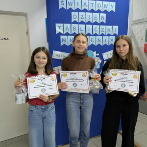 .Podsumowaniem tygodnia był 21 listopada – XV Światowy Dzień Tabliczki Mnożenia . W tym dniu uczniowie mieli okazję sprawdzić swoją wiedzę, pisząc egzamin. Osoby, które odpowiedziały bezbłędnie, otrzymały tytuł Eksperta Tabliczki Mnożenia oraz certyfikat. Odbyło się też losowanie drobnych upominków dla wszystkich uczniów, którzy odpowiadali na pytania w ciągu całego tygodnia. Na zakończenie tego dnia prawie wszyscy uczniowie chętnie wzięli udział w szkolnym konkursie matematycznym „Mistrz Tabliczki Mnożenia”.