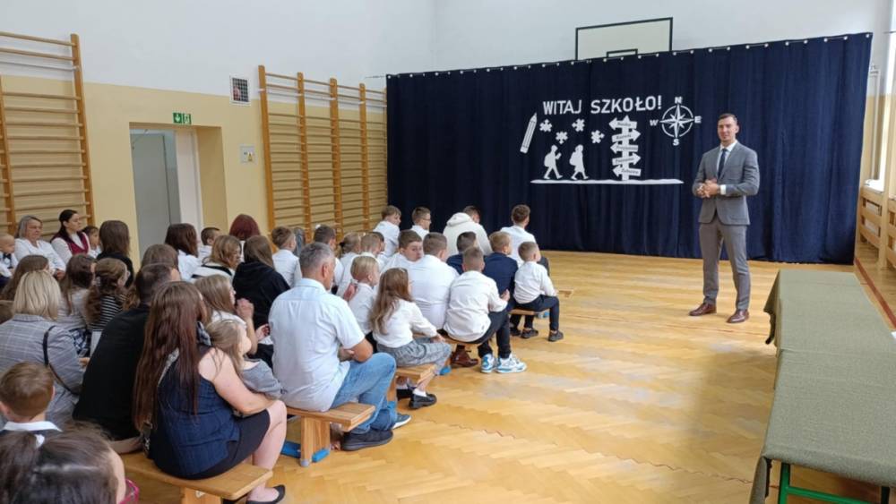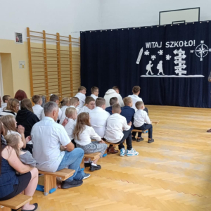 Uczniowie wraz z rodzicami i nauczycielami wzięli udział w Mszy Świętej, następnie po odśpiewaniu hymnu narodowego w szkole zostali wprowadzeni w nowy rok szkolny przez pana dyrektora Daniela Szymańskiego.