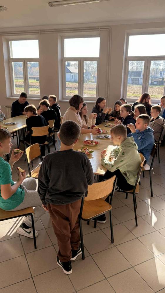 .Tego dnia uczniowie dowiedzieli się, jak prawidłowo przygotować zdrowe śniadanie pod czujnym okiem Pani dietetyk Weroniki Kawy. Następnie wspólnie zjedli przygotowane posiłki, by mieć siłę i energię na dalszą zabawę i naukę
