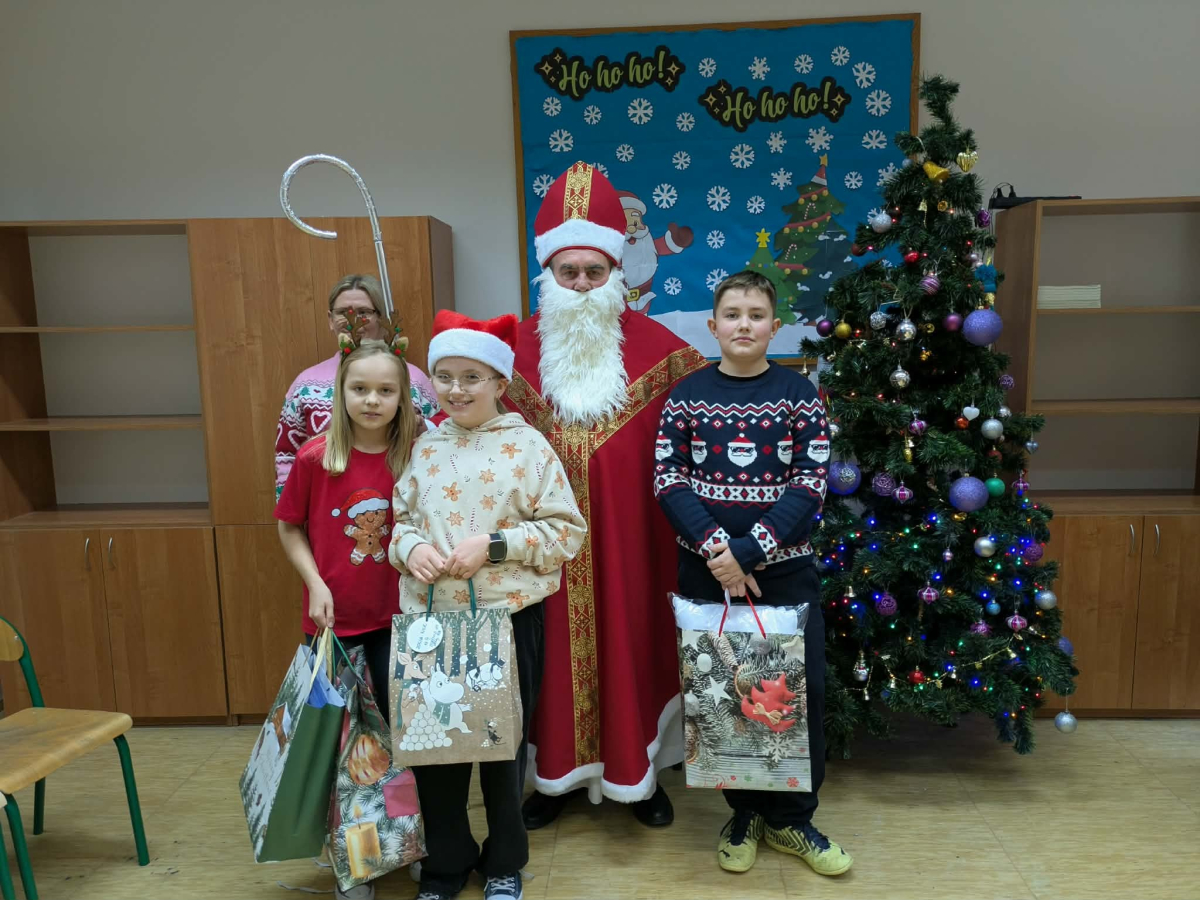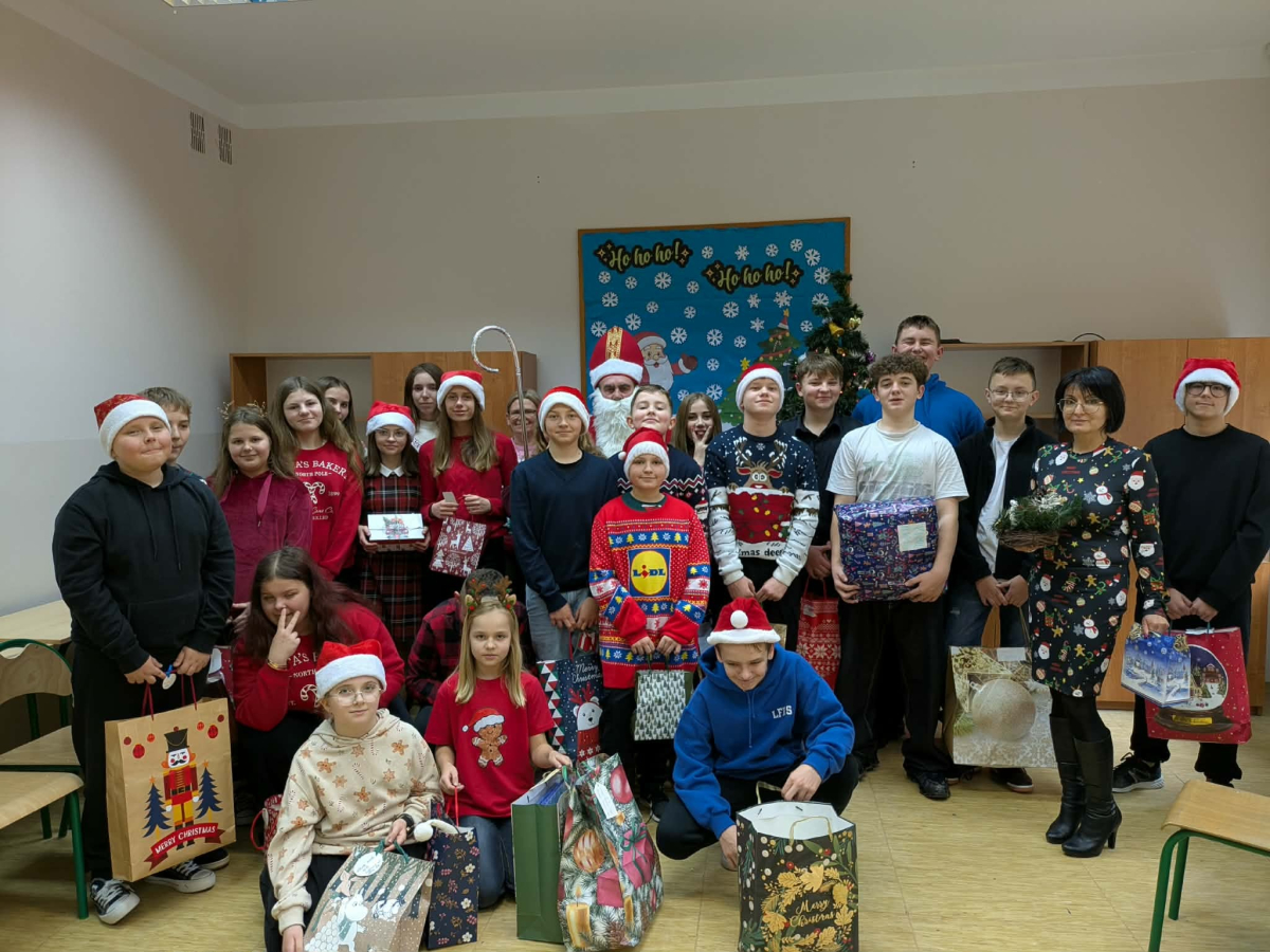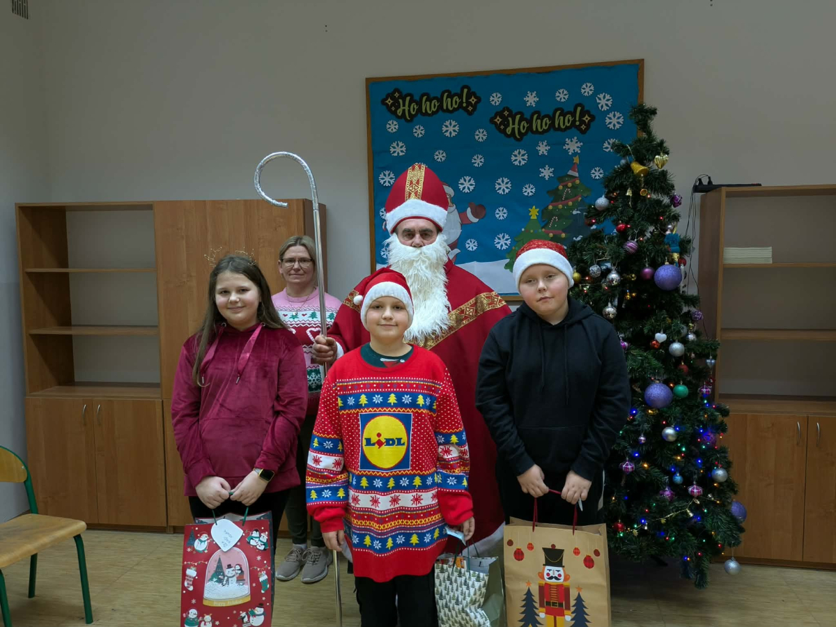 Mikołaj odwiedził wszystkie klasy, rozmawiał z uczniami, wysłuchał przygotowanych piosenek i wierszy, a następnie wręczył wszystkim upominki. Dzieci chętnie pozowały do wspólnych zdjęć i dzieliły się swoimi świątecznymi marzeniami.