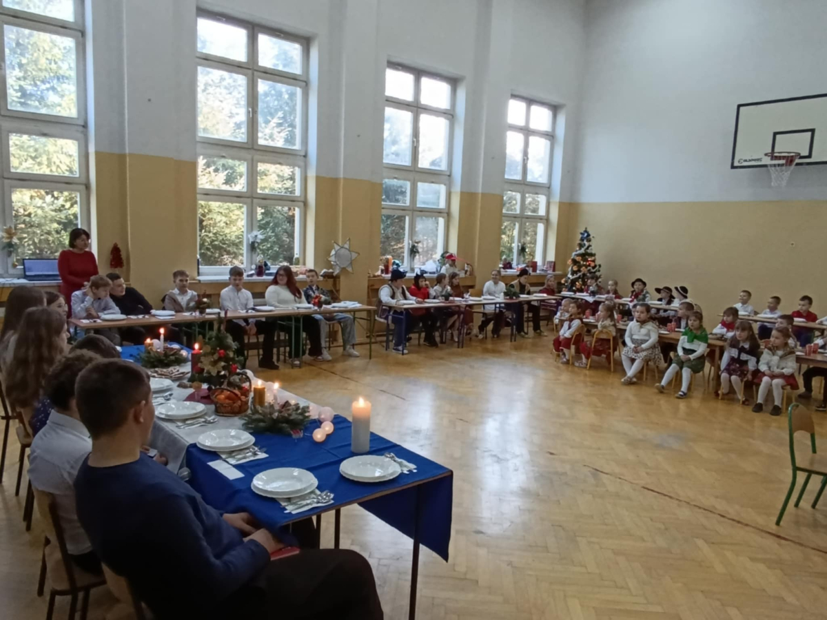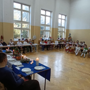 Wspólna wigilia szkolna była okazją do spotkania, rozmów i celebrowania nadchodzących Świąt Bożego Narodzenia.