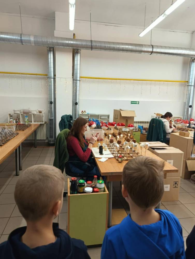 Podczas zwiedzania poznaliśmy proces powstawania bombek – od momentu wydmuchiwania szkła, przez srebrzenie, aż po ręczne zdobienie. Każdy mógł zobaczyć, jak wiele pracy i talentu kryje się za tymi pięknymi ozdobami